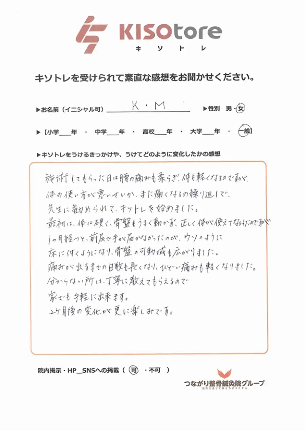「治療が専門的で驚異的でした。治療でかなり楽になりました」
